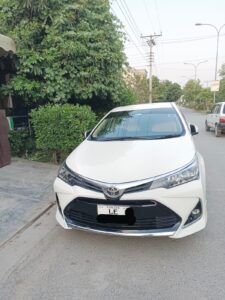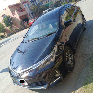 This is a sleek black Toyota Corolla Altis Grande with a modern and sporty design. It features sharp projector headlights, chrome front accents, and stylish alloy wheels. The Altis Grande is known for its comfort, fuel efficiency, and reliable performance—making it a popular sedan for both family use and executive travel.